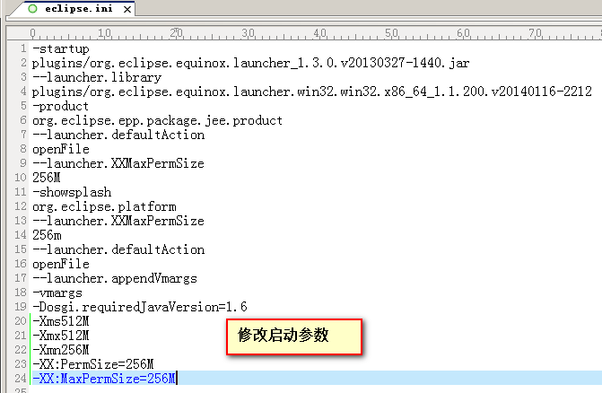 19_增加eclipse的jvm内存参数,-XX:PermSize=100M -XX:MaxNewSize=200m -XX:MaxPermSize=200m