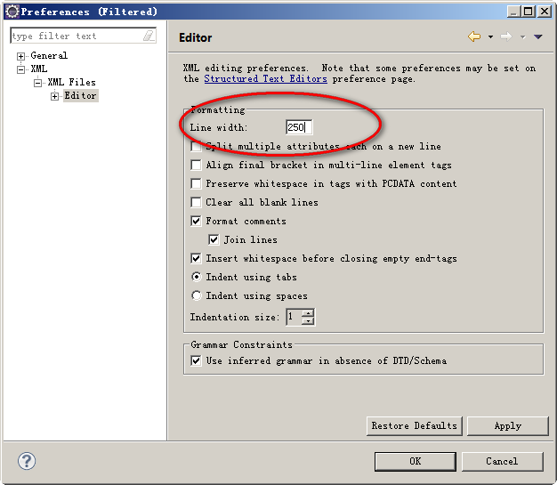 09_修改xml格式化宽度为250