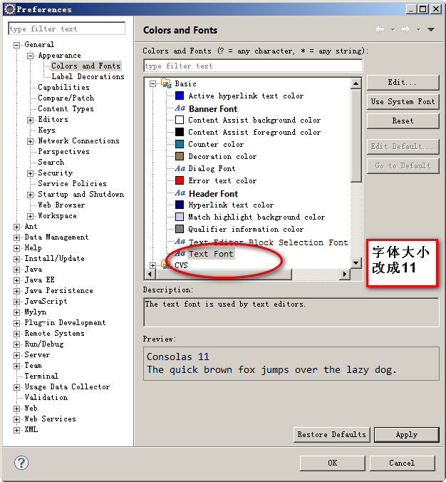 12_修改编辑器字体大小,此版本的eclipse显示字体有点小,可以按下图方式放大一号